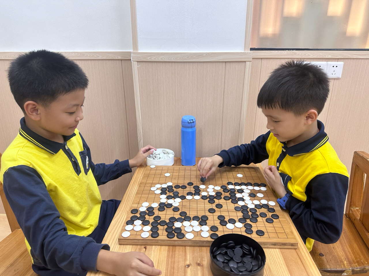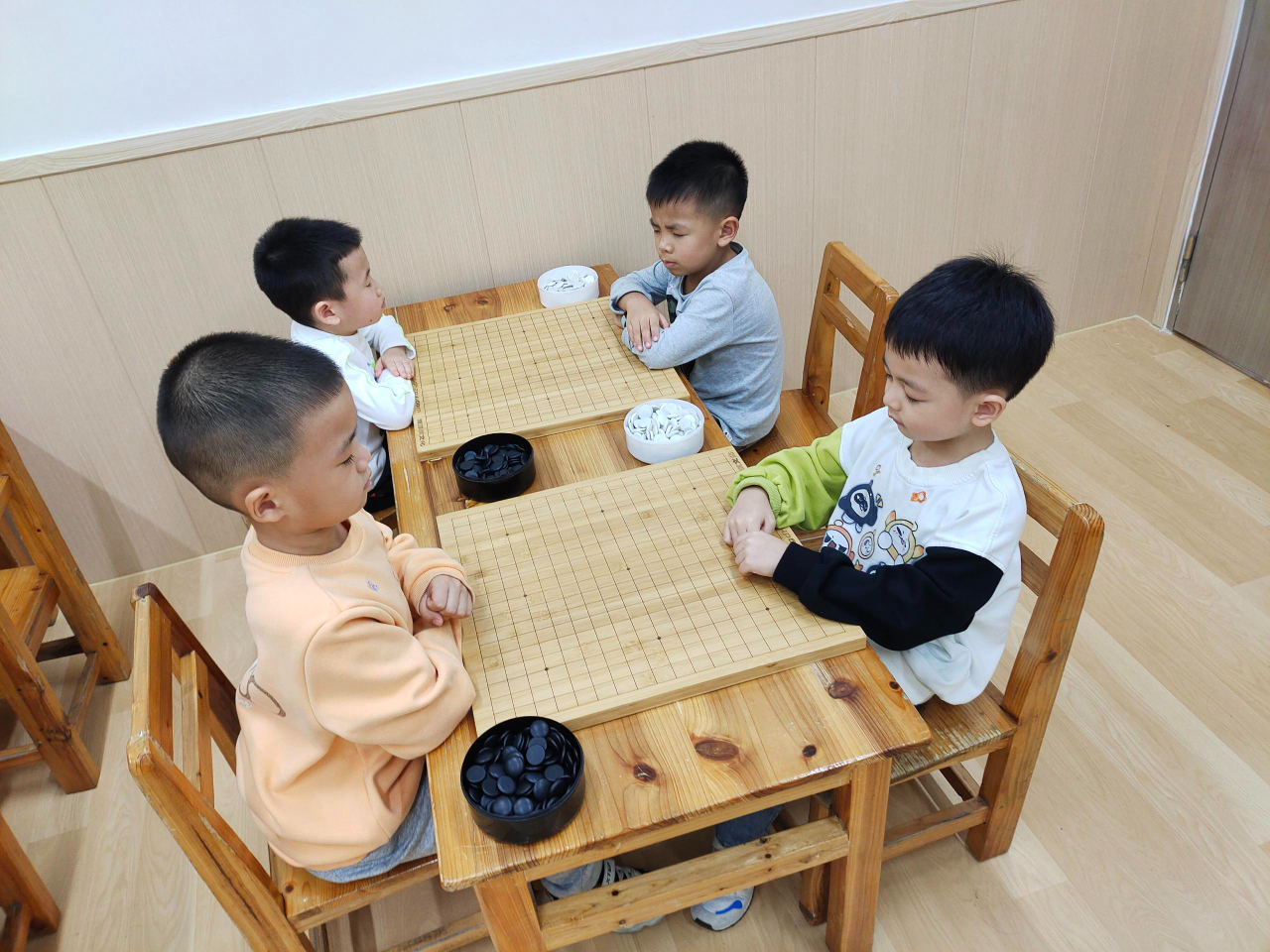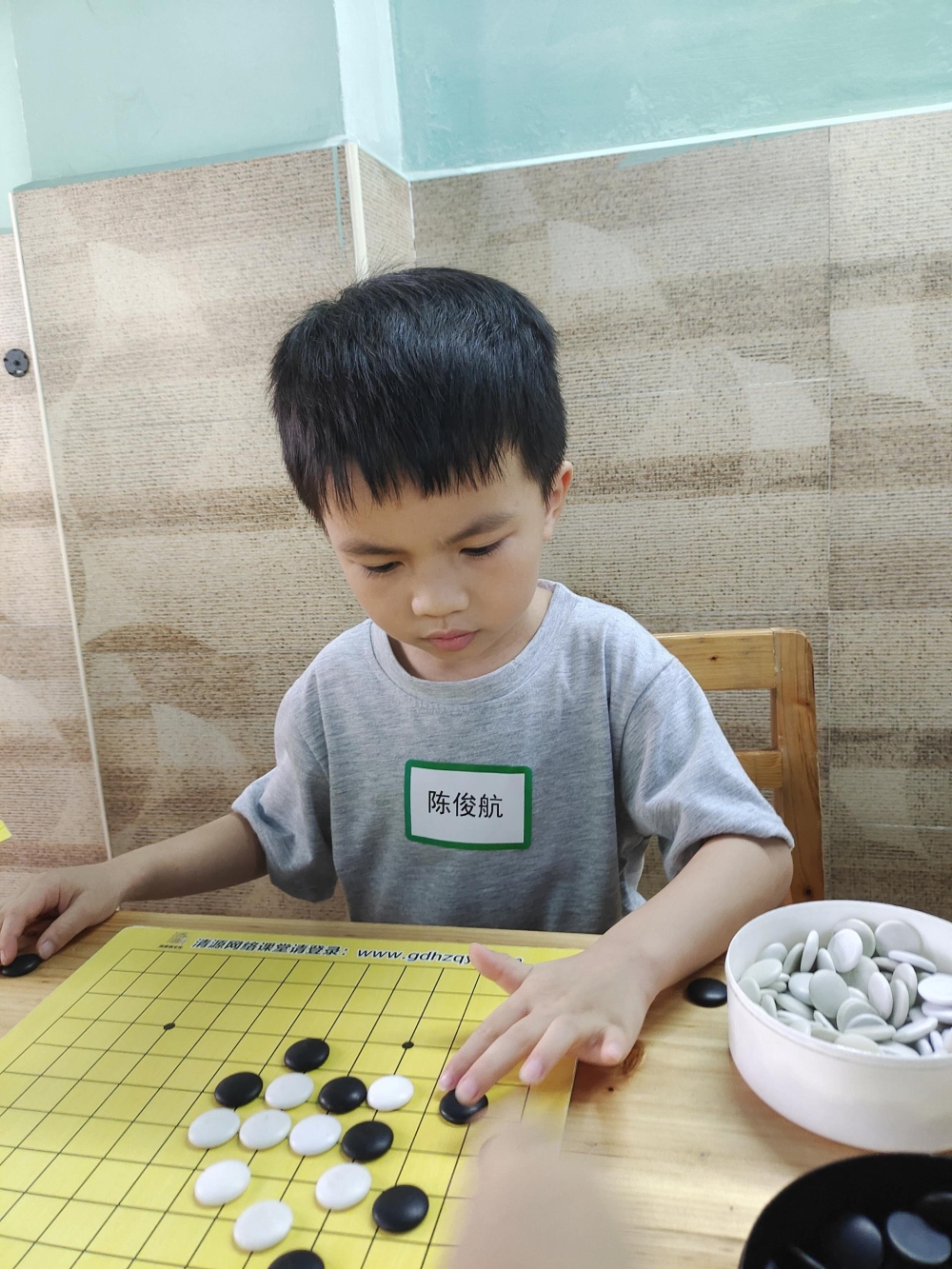 對弈前的坐姿端正,對弈中的聚精會神,這模樣足以表達(dá)孩子們對圍棋的熱愛。