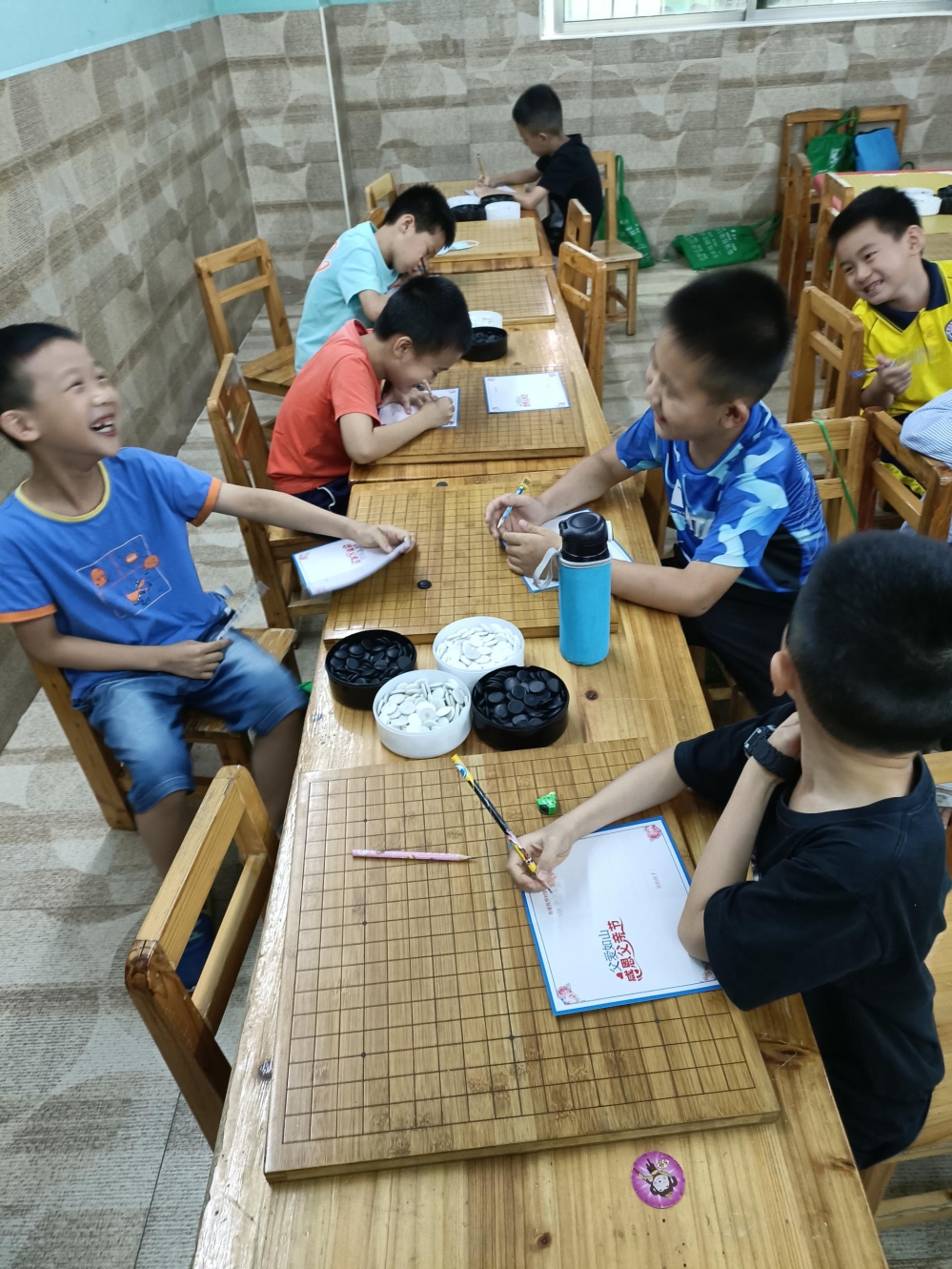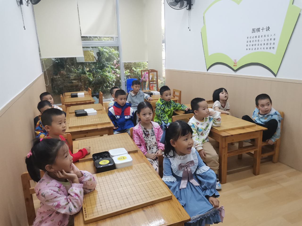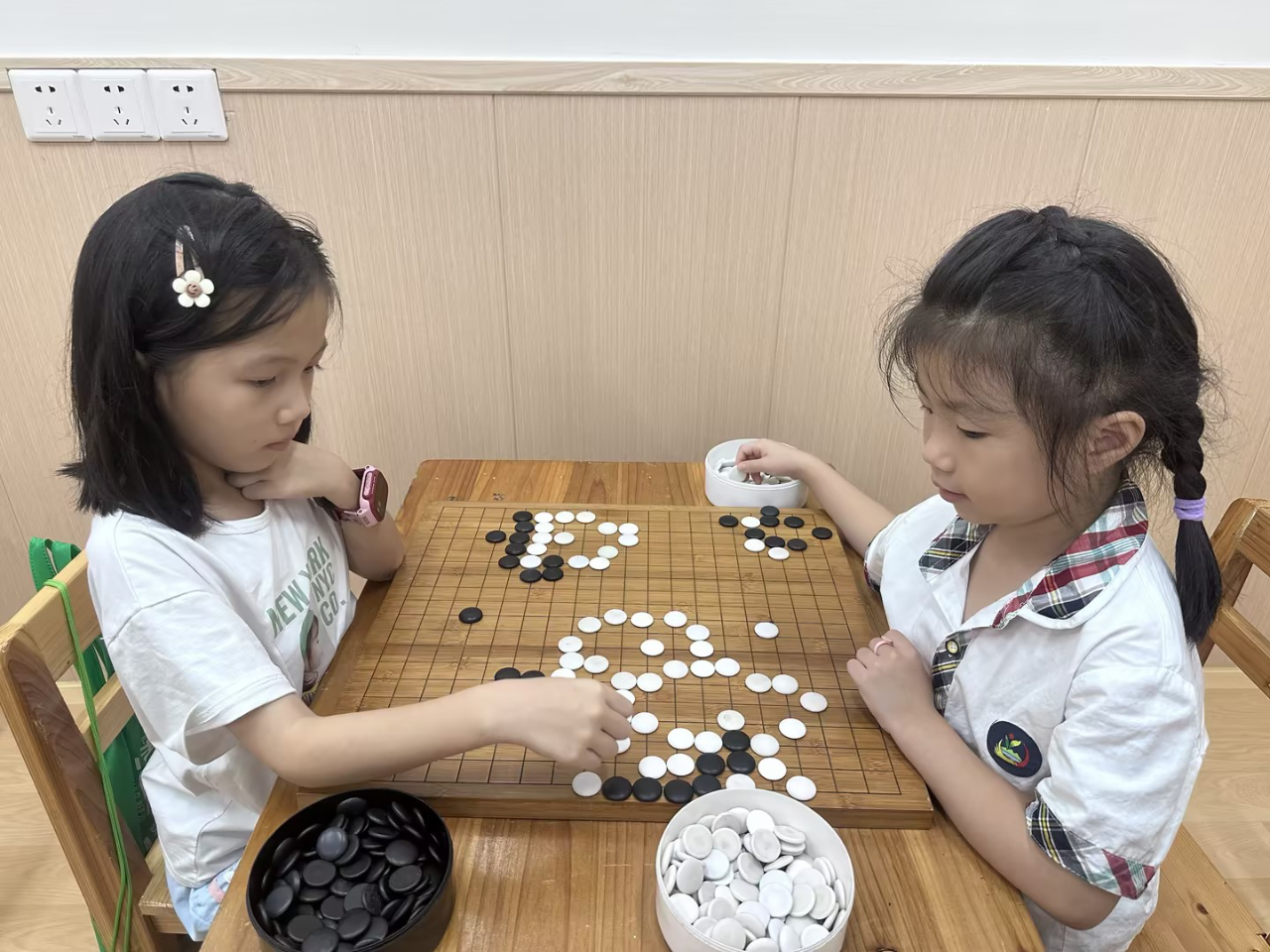 對弈前的坐姿端正,對弈中的聚精會神,這模樣足以表達(dá)孩子們對圍棋的熱愛。