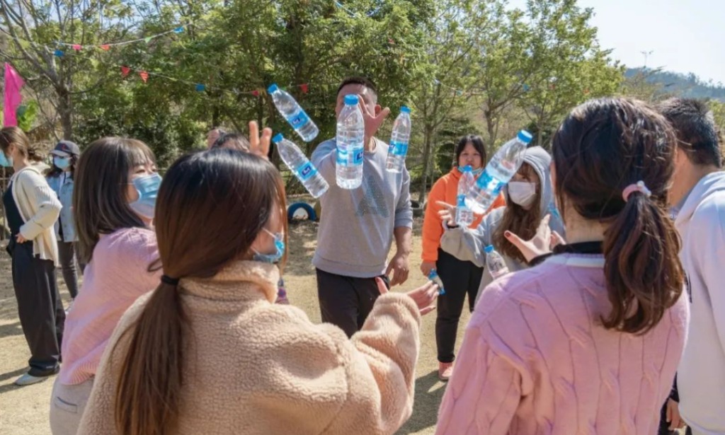 ?? 蒙眼聽口令達(dá)到指定目的地:老師們將眼睛蒙起來(lái),聽從口令,帶領(lǐng)小組的所有成員到達(dá)指定地點(diǎn),則為成功。老師們彼此間相互信任,手牽著手,手搭著肩膀,聽著口令一步步成功的到達(dá)指定地點(diǎn),完美的展現(xiàn)了彼此間的默契和信任。
