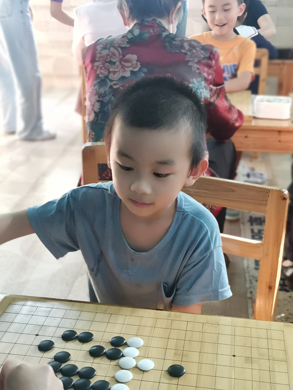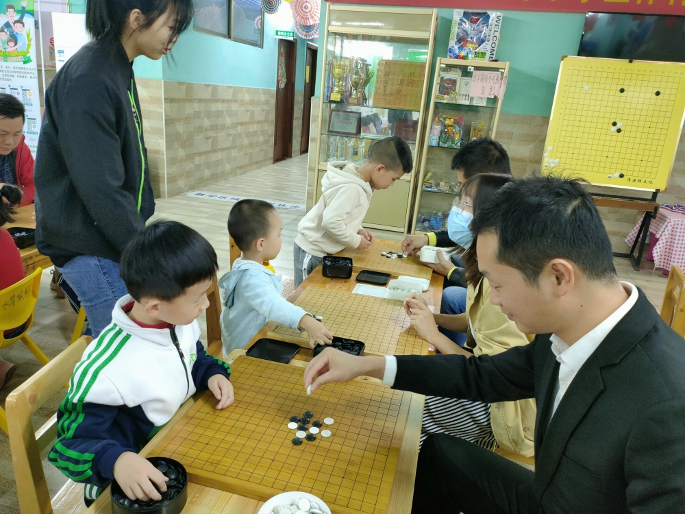 對弈前的坐姿端正,對弈中的聚精會神,這模樣足以表達(dá)孩子們對圍棋的熱愛。
