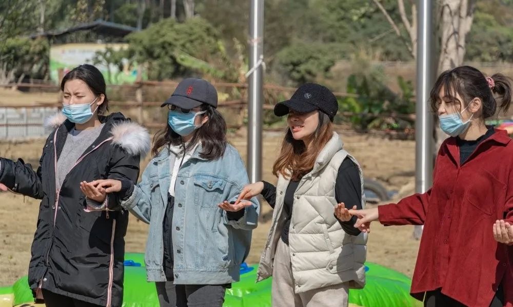 ?? 蒙眼聽口令達(dá)到指定目的地:老師們將眼睛蒙起來(lái),聽從口令,帶領(lǐng)小組的所有成員到達(dá)指定地點(diǎn),則為成功。老師們彼此間相互信任,手牽著手,手搭著肩膀,聽著口令一步步成功的到達(dá)指定地點(diǎn),完美的展現(xiàn)了彼此間的默契和信任。
